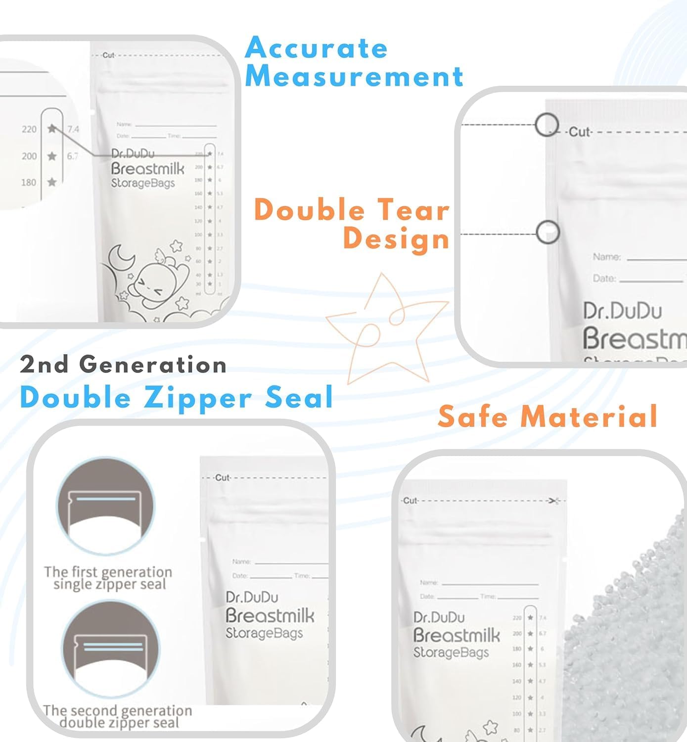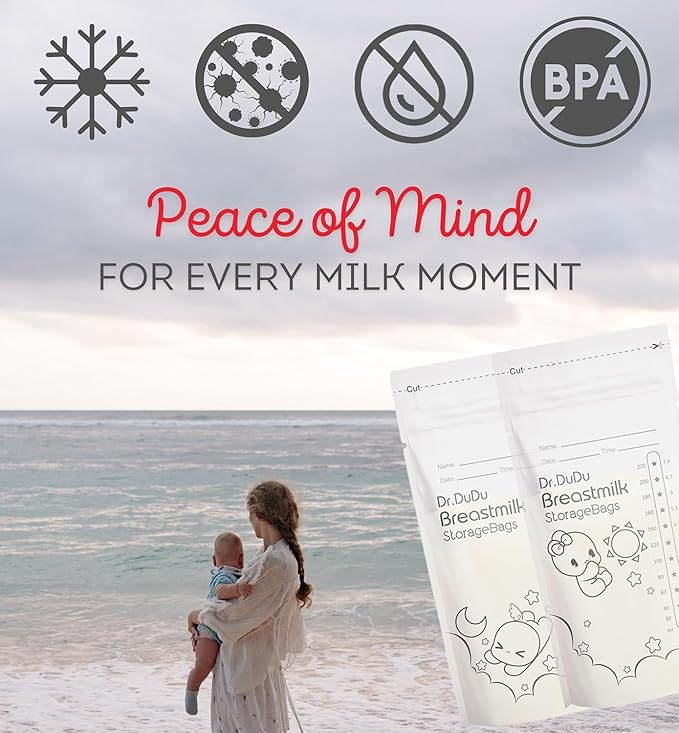 LEAK-PROOF & SELF-STANDING: Each breast milk storage bag is specially designed with double zipper for extra security and sealing. It makes the bag completely leak-proof and with no-spill & self-standing bottom. You can store the milk easily and conveniently in refrigerator