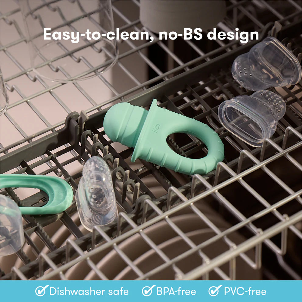 •FOOD INTRODUCTION: Fill feeder with fresh or frozen fruits, vegetables, yogurt, purees, breastmilk, or ice cubes.